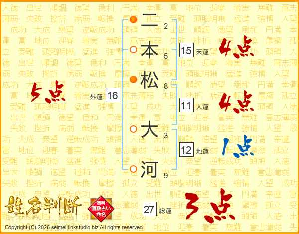 二(2画)本(5画)松(8画) 大(3画)河(9画)
