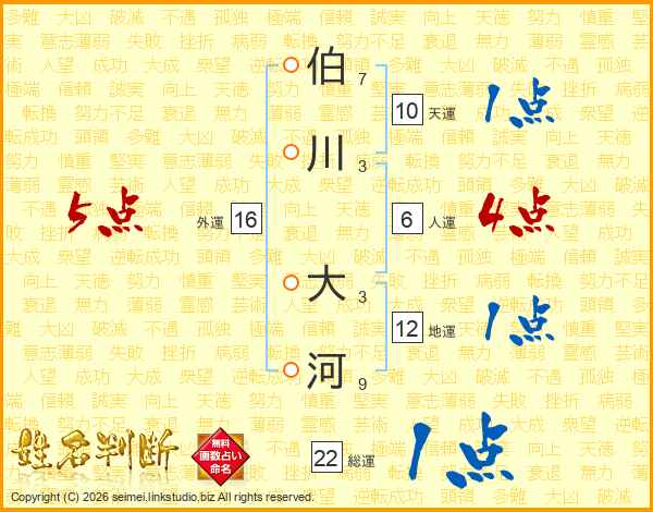 伯川大河さんの総運は22画の1点!