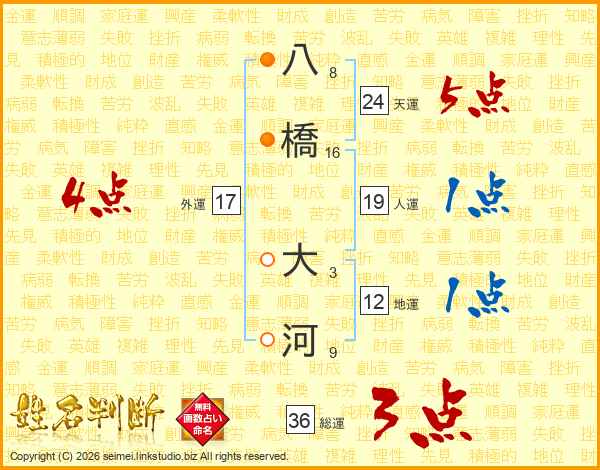 八橋大河さんの天運は24画の5点!