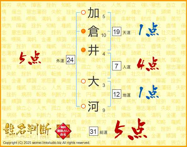 加倉井大河さんの総運は31画の5点!
