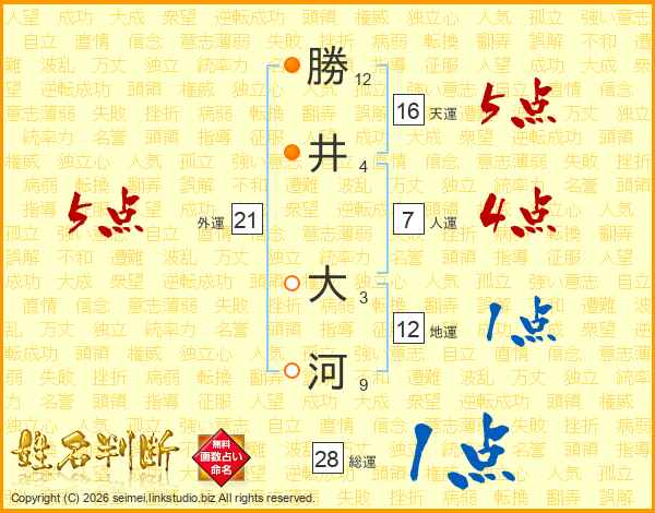 勝井大河さんの総運は28画の1点!