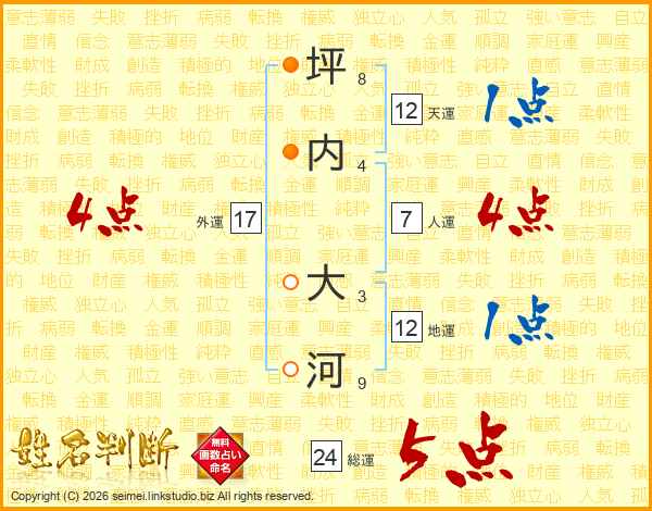 坪内大河さんの総運は24画の5点!