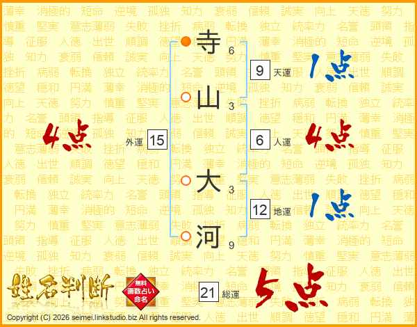 寺山大河さんの総運は21画の5点!