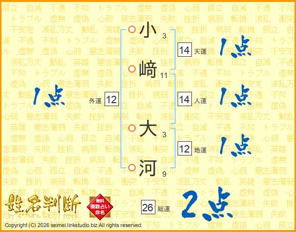 小﨑大河さんの総運は26画の2点!