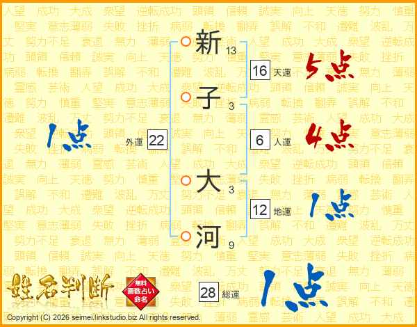 新子大河さんの天運は16画の5点!