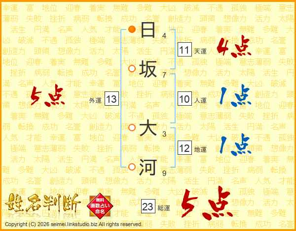 日坂大河さんの天運は11画の4点!
