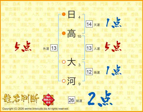 日高大河さんの総運は26画の2点!