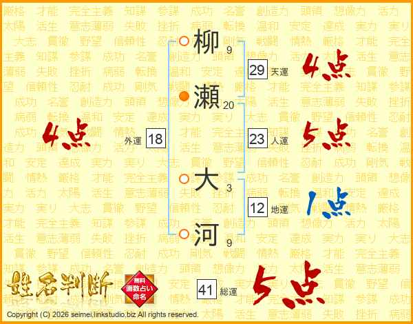 柳瀬大河さんの人運は23画の5点!