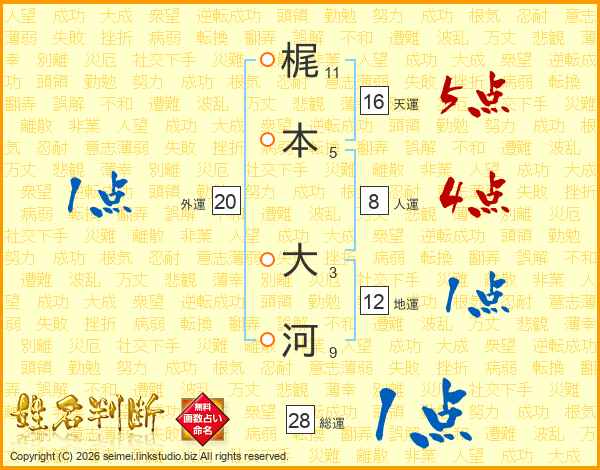 梶本大河さんの総運は28画の1点!