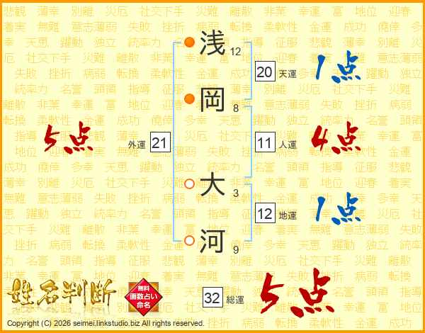 浅岡大河さんの総運は32画の5点!