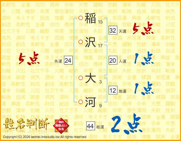 稲沢大河さんの天運は32画の5点!
