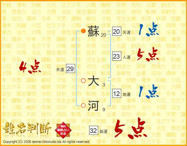 蘇大河さんの総運は32画の5点!