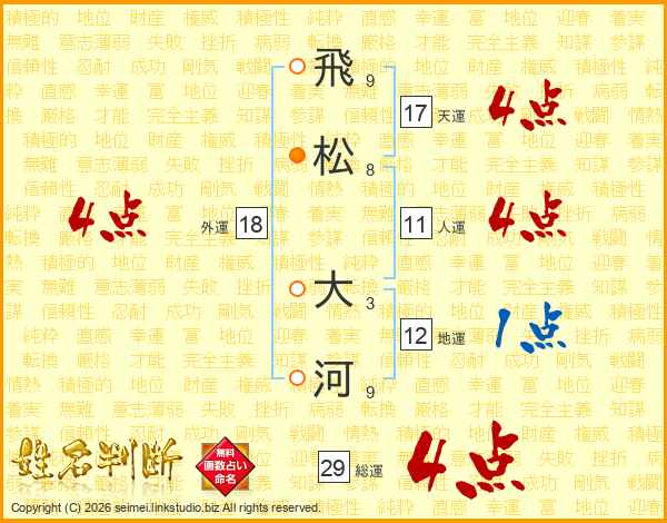 飛松大河さんの天運は17画の4点!