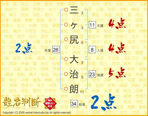 三ヶ尻大治朗さんの天運は11画の4点!