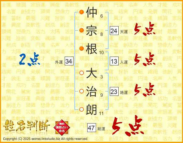 仲宗根大治朗さんの総運は47画の5点!