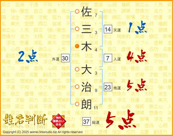 佐三木大治朗さんの総運は37画の5点!