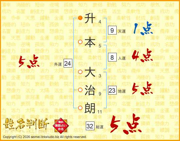 升(4画)本(5画) 大(3画)治(9画)朗(11画)
