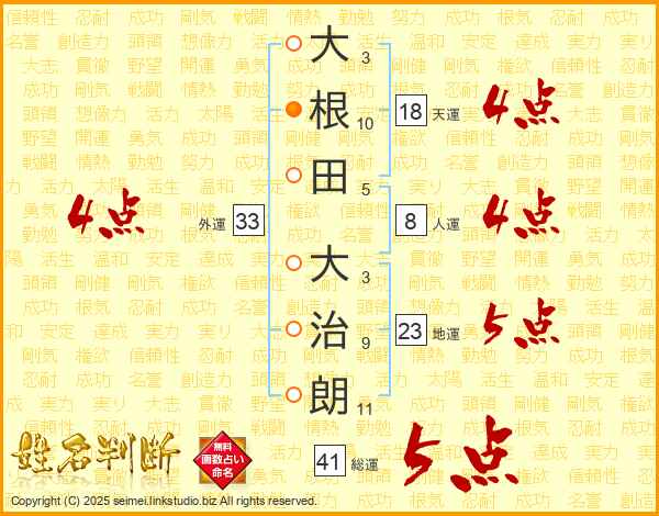 大根田大治朗さんの総運は41画の5点!
