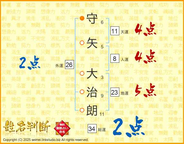守矢大治朗さんの総運は34画の2点!