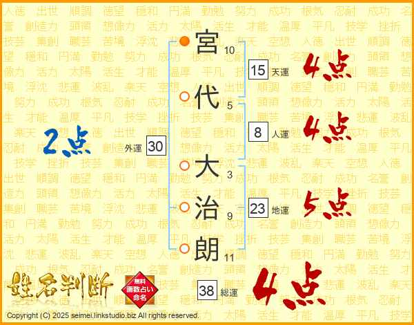 宮代大治朗さんの総運は38画の4点!