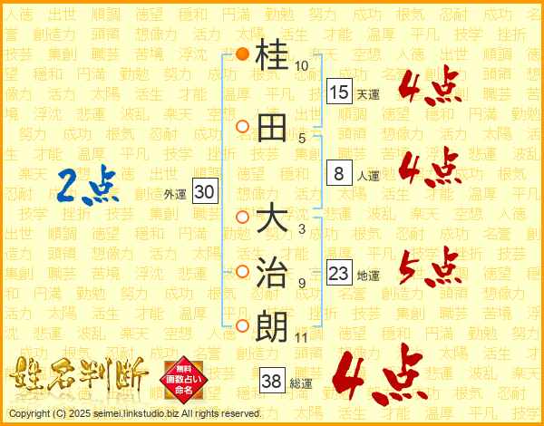 桂(10画)田(5画) 大(3画)治(9画)朗(11画)