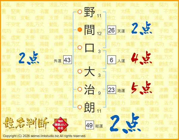 野間口大治朗さんの天運は26画の2点!