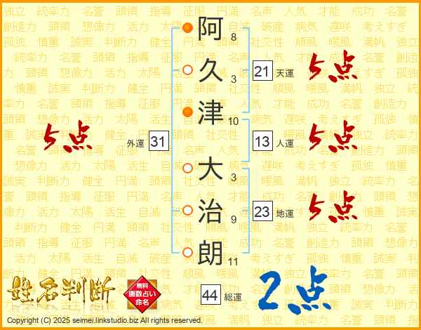 阿久津大治朗さんの天運は21画の5点!