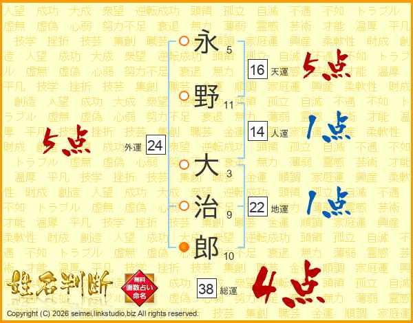 永野大治郎さんの総運は38画の4点!