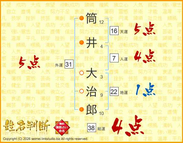 筒井大治郎さんの総運は38画の4点!