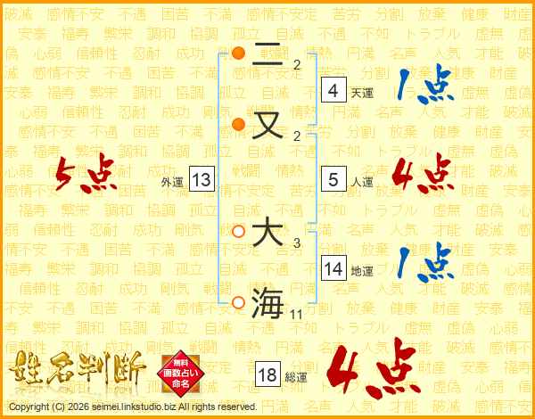 二又大海さんの総運は18画の4点!