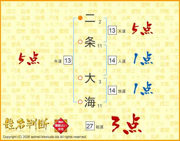 二条大海さんの総運は27画の3点!