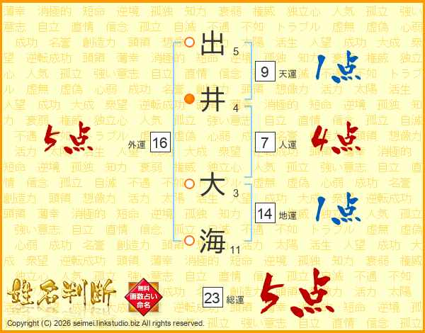出井大海さんの総運は23画の5点!