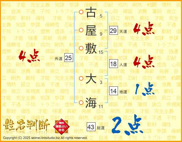 古屋敷大海さんの総運は43画の2点!