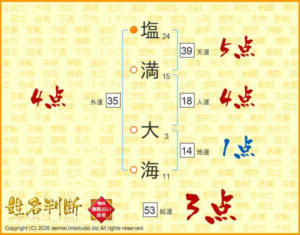 塩(24画)満(15画) 大(3画)海(11画)