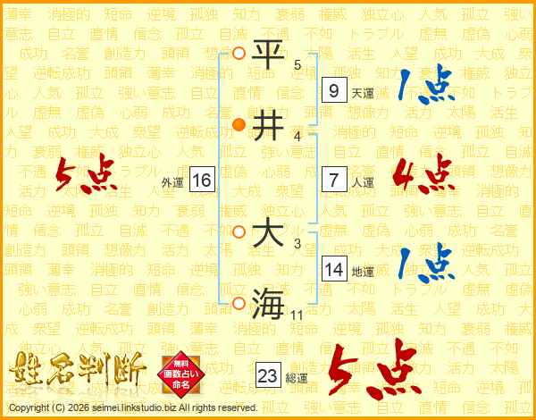 平井大海さんの総運は23画の5点!