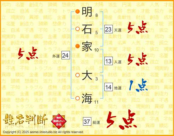 明(8画)石(5画)家(10画) 大(3画)海(11画)