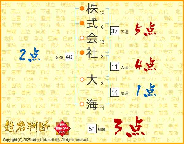 株式会社大海さんの総運は51画の3点!