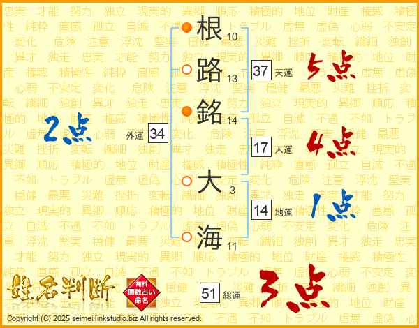 根路銘大海さんの地運は14画の1点!