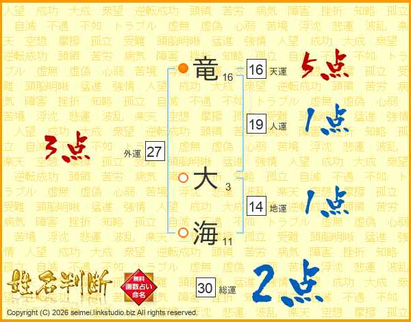竜大海さんの総運は30画の2点!