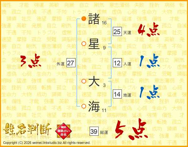 諸星大海さんの総運は39画の5点!