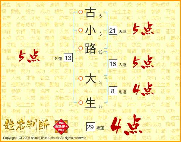 古小路大生さんの総運は29画の4点!