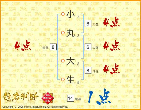 小丸大生さんの総運は14画の1点!