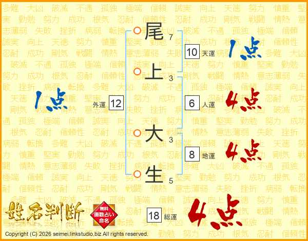 尾上大生さんの総運は18画の4点!