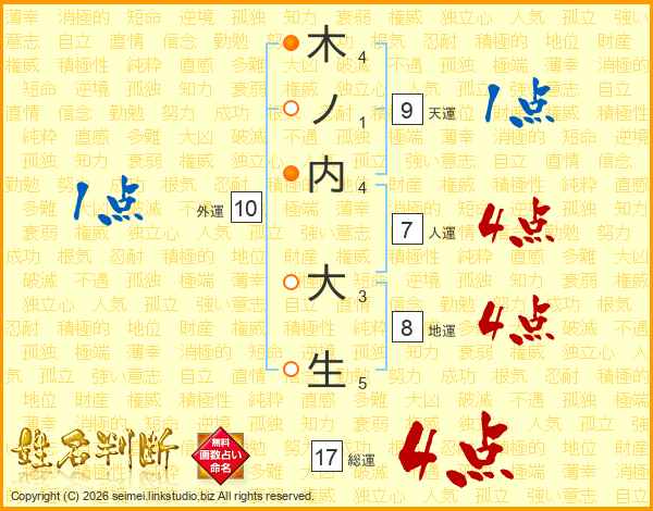 木ノ内大生さんの総運は17画の4点!