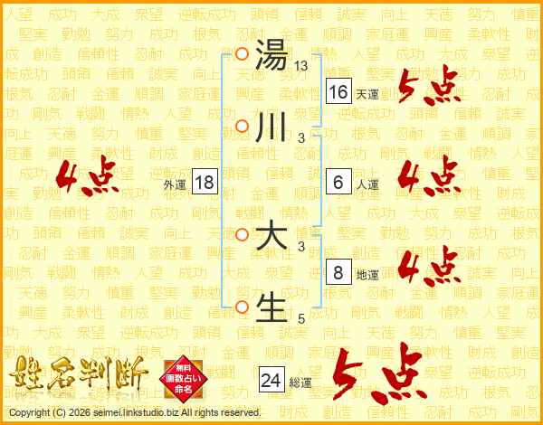 湯川大生さんの総運は24画の5点!