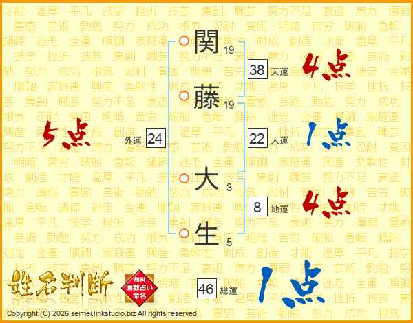 関藤大生さんの天運は38画の4点!
