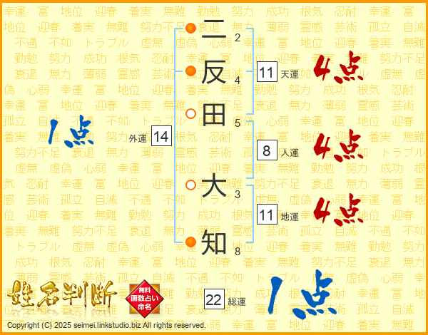 二反田大知さんの天運は11画の4点!