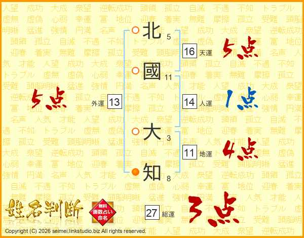 北國大知さんの天運は16画の5点!