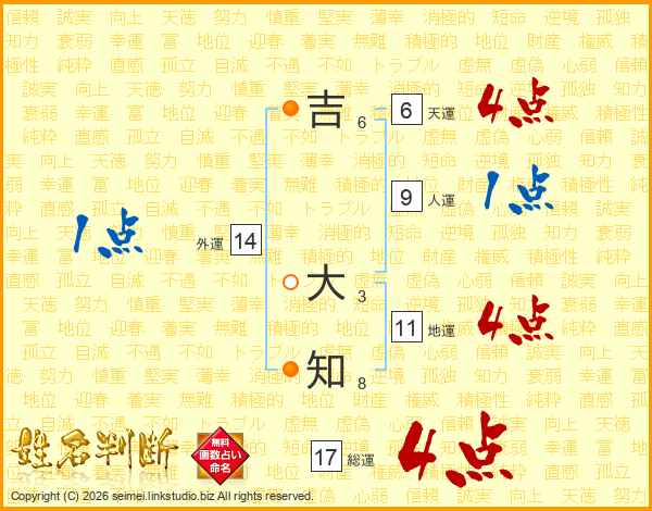 吉大知さんの総運は17画の4点!