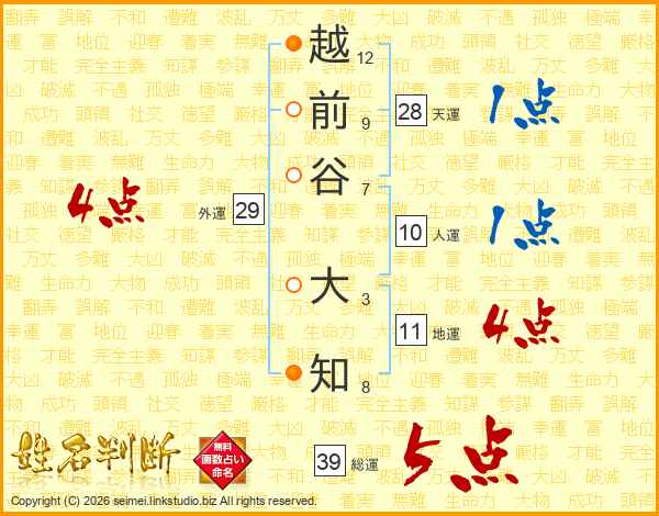 越前谷大知さんの総運は39画の5点!